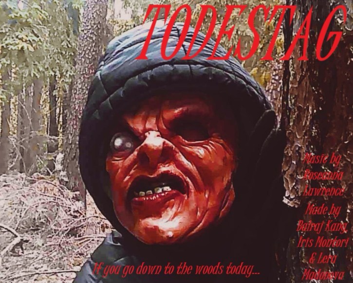 Shot entirely in Nuremberg Germany during the Weekend of Fear 2025 with no budget, script or preparation by Balraj Kang, Iris Montori and Lera Madonova. TODESTAG follows the story of two lovers who visit the woods only to realize that they are being stalked by a hideous deformed maniac! Music composed by Roseanna Lawrence.